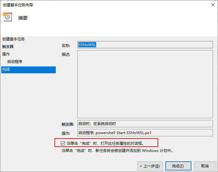 将上面涉及到的命令组成powershell脚本Start-SSHoWSL.ps1,今后可以自动运行
