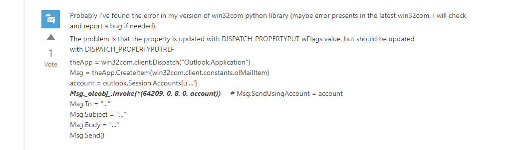 1 | account = outlook.Session.Accounts.Item("designated.account@mailbox.com") |